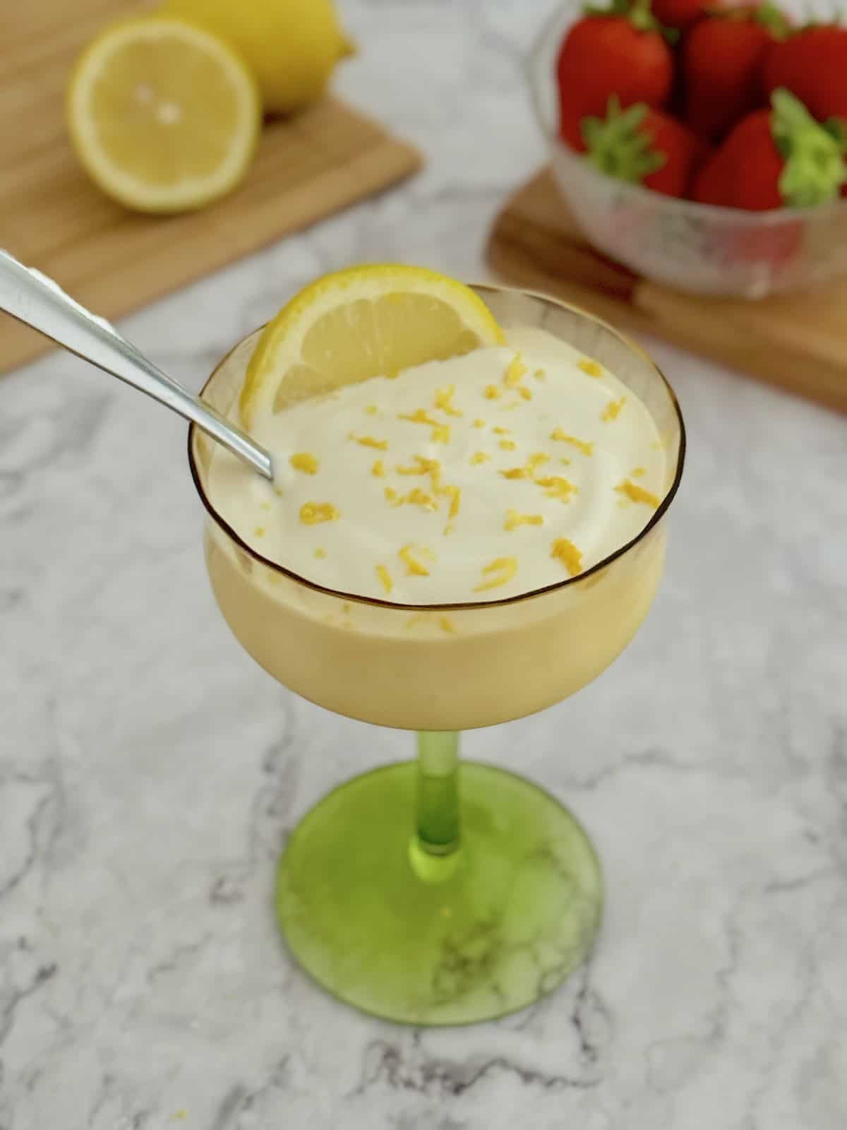 - Serve in small bowls or glasses, topped with fresh sliced strawberries, lemons or lemon zest. Optional: Chill inโ the fridge for 30 minutes for a cooler pudding.